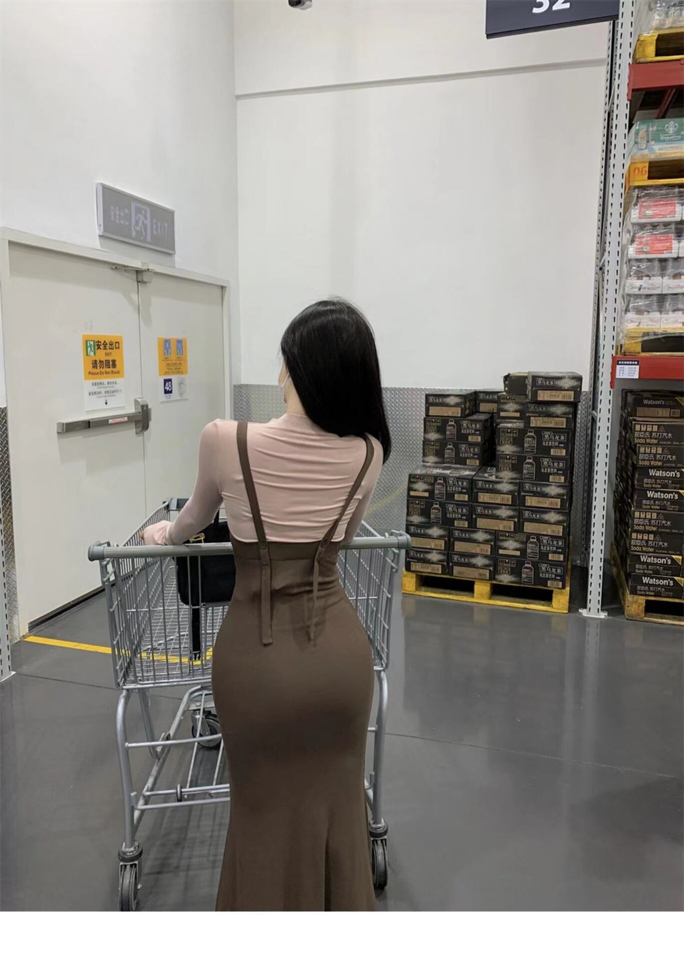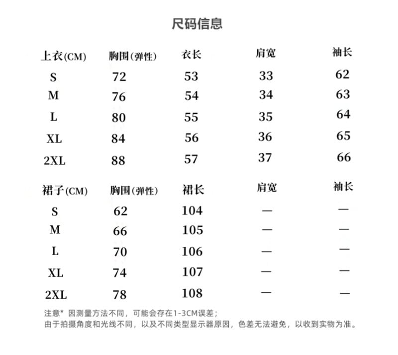 色:ライトグレーのトップ+ダークグレーのスカート,アプリコットトップ+コーヒースカート,ダークピンクのトップス+コーヒースカート サイズ:S,M,L,XL,XXL 684639991800AB