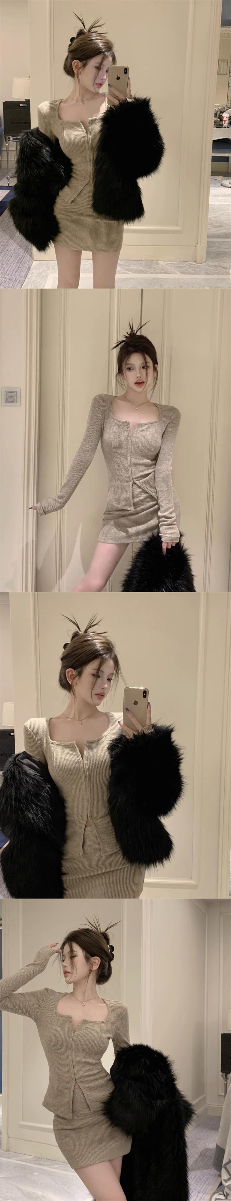 色:グレーのカーディガン,グレースカート,カーキカーディガン,カーキ色のスカート,ブラックカーディガン,黒スカート サイズ:S,M,L,XL 743125257107AB
