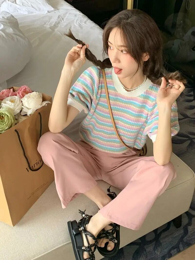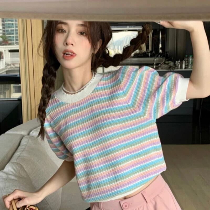 色:01(レインボーストライプ),02(ブルーストライプ) サイズ:S,M,L 生地,素材:COTTON,POLYESTER 1005005726550645AE