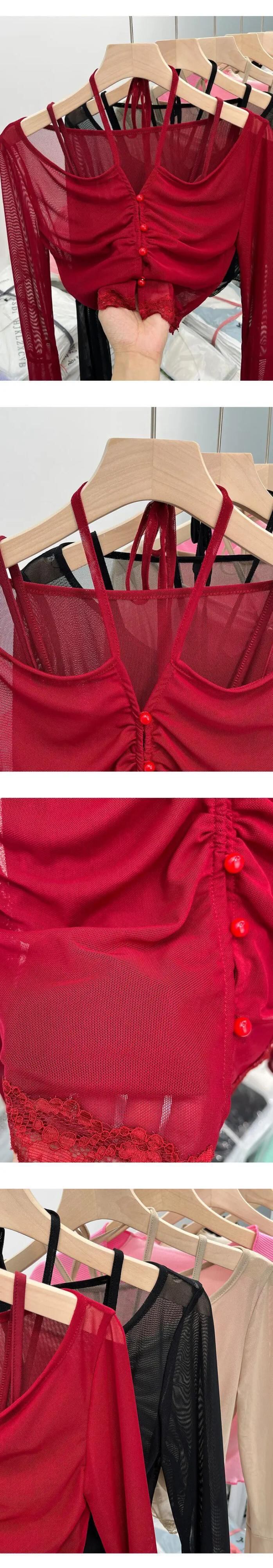色:01(カーキなしキャミ),02(黒キャミスなし),03(バーガンディーノーキャミ) サイズ:S,M,L,XL,XXL 生地,素材:COTTON,POLYESTER 1005005841669141AE